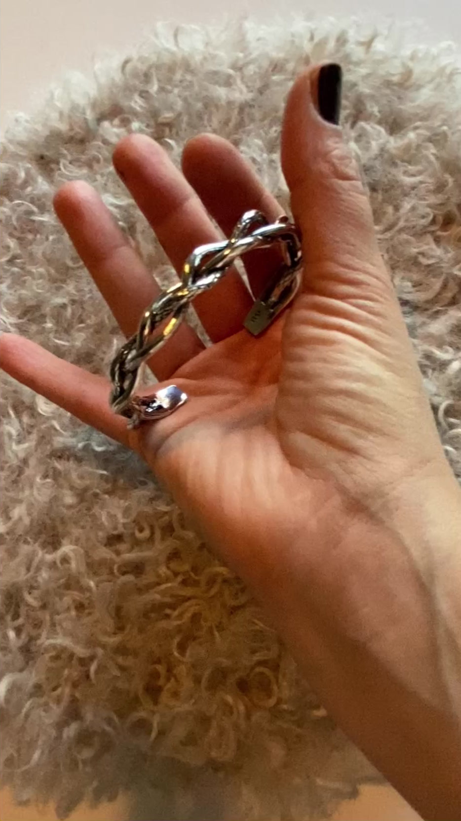 Ett elegant och tidlöst armband i silver med en vacker tvinnad tredubbel design som fångar ljuset på ett subtilt sätt. Den tredubbla tvinnade formen symboliserar livets samklang: dåtid, nutid och framtid. Den klassiska, lätt lyxiga looken gör att det passar lika bra till vardags som till fest - perfekt för både henne och honom.